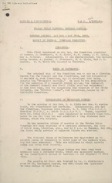 Report - General Purposes Committee, 14 February 1926 (page 1)
