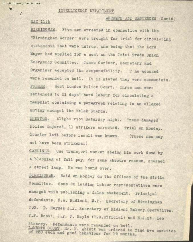Intelligence Report - Arrests and Sentences, 11 May 1926 (page 1)