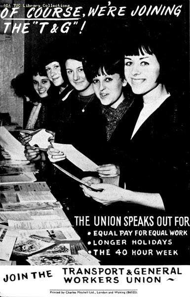 This recruitment advertisement by the Transport & General Workers Union is taken from a leaflet 'Equal pay for equal work: a new deal for women in engineering' published by the Confederation of Shipbuilding and Engineering Unions.