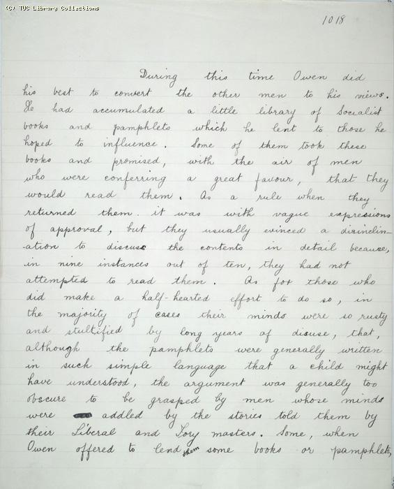 During this time Owen did his best to convert the other men to his views. He had accumulated a little library of Socialist books and pamphlets which he lent to those he hoped to influence. Some of them took these books and promised, with the air of men who were conferring a great favour, that they would read them. As a rule, when they returned them it was with vague expressions of approval, but they usually evinced a disinclination to discuss the contents in detail because, in nine instances out of ten, they had not attempted to read them. As for those who did make a half-hearted effort to do so, in the majority of cases their minds were so rusty and stultified by long years of disuse, that, although the pamphlets were generally written in such simple language that a child might have understood, the argument was generally too obscure to be grasped by men whose minds were addled by the stories told them by their Liberal and Tory masters. Some, when Owen offered to lend them some books or pamphlets |