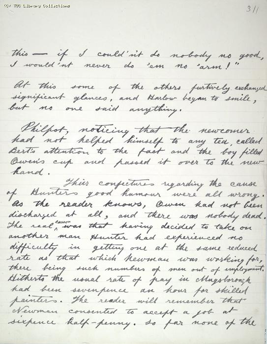 this - if I couldn't do nobody no good, I wouldn't never do 'em no 'arm!' At this some of the others furtively exchanged significant glances, and Harlow began to smile, but no one said anything. Philpot, noticing that the newcomer had not helped himself to any tea, called Bert's attention to the fact and the boy filled Owen's cup and passed it over to the new hand. Their conjectures regarding the cause of Hunter's good humour were all wrong. As the reader knows, Owen had not been discharged at all, and there was nobody dead. The real reason was that, having decided to take on another man, Hunter had experienced no difficulty in getting one at the same reduced rate as that which Newman was working for, there being such numbers of men out of employment. Hitherto the usual rate of pay in ugsborough had been sevenpence an hour for skilled painters. The reader will remember that Newman consented to accept a job at sixpence alfpenny. So far none of the |