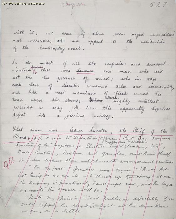with it; and some of them even urged unconditional surrender, or an appeal to the arbitration of the Bankruptcy Court. In the midst of all the confusion and demoralization there was, however, one man who did not lose his presence of mind, who in this dark hour of disaster remained calm and immovable, and like a vast mountain of flesh reared his head above the storm, whose mighty intellect perceived a way to turn this apparently hopeless defeat into a glorious victory. That man was Adam Sweater, the Chief of the Band. |