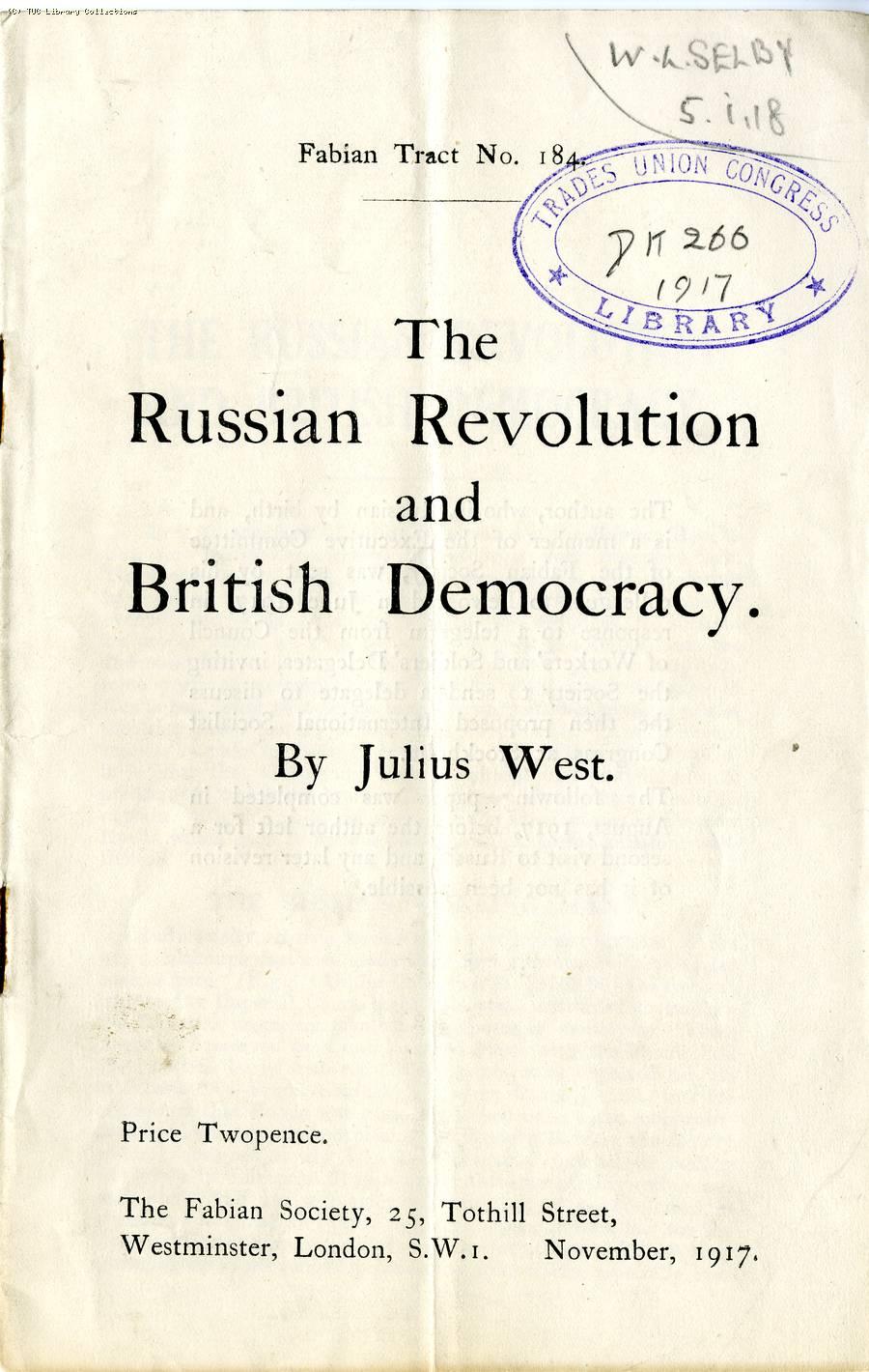 Russian by birth, the historian and Fabian socialist Julius West spent the years 1915-1917 in Russia, working primarily as a journalist. He wrote this pamphlet shortly before the October Revolution and it was published by the Fabian Society as Fabian Tract 184 in 1917.